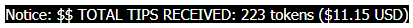 /tips - shows BC & Mods Tips Received + USD Conversion...