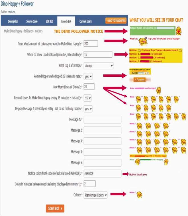 - First you are asked to set the amount of tokens; e.g. if you insert 200 tokens and if the user tips those 200 tokens or above that value will make Dino Happy in your chat room.