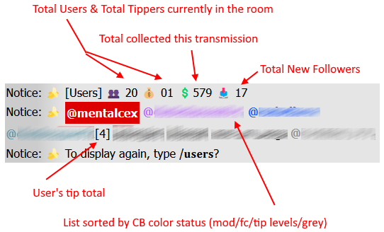 This application allows users to be targeted dynamically by name, type, group, or status. This means that certain advertisements may only display to your Mods, while a private tip menu only displays to your Fan club members, while special colors are only available to tippers, while a unique advertisement panel is only displayed to your grey users, while a customized leaderboard (including goals information) is actively displayed to users with tokens, while you consider starting a ticket show that has discounts only for your virtual club members! Many other unique scenarios are possible, limited only by your imagination of available functionality!