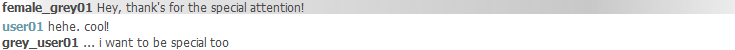 This bot will change both the font and background colors for select grey users! Usernames must be entered as a comma delimited list on the bot's interface (EG: user01,person02,gray03). Only grey users are supported! The bot uses the actual 'Chaturbate Username Grey' color, which provides a seamless and recognizable transition for your regulars!
