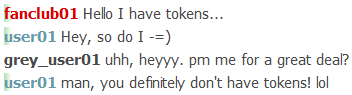 If you run this in the "Bot #1" (1st bot slot) position, it will override the output of other bots. Meaning, you could use this as an add-on for some 'tip total' or 'leader board' bots. It will add-on to other bots by changing the chat colors of 'has tokens' users, and nothing else!