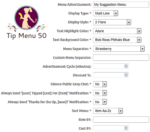 2. The bot will now respond to both /tipmenu and /menu. If the command is typed by the broadcaster, then the 'tip menu' is sent publicly to the entire chat room. If the command is typed by a user, then the 'tip menu' is sent privately, only to that user!